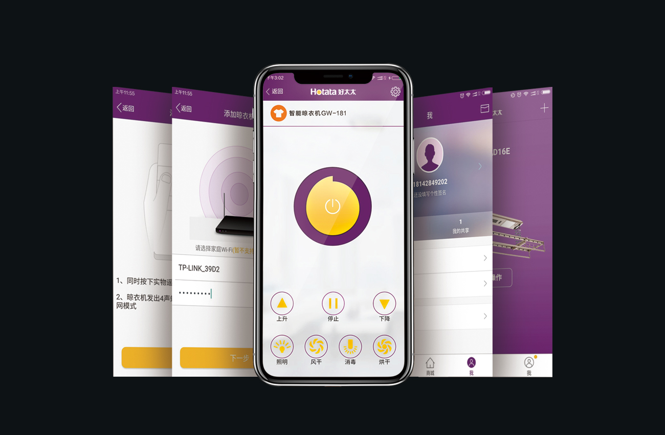 智尊系列搭載mk体育-MKsports官网專屬APP,使用手機即可控制遠程控制晾衣機,APP一鍵即可控制晾衣機的所有功能,查看晾衣狀態,衣物晾曬了然于心,穿衣不等待。
