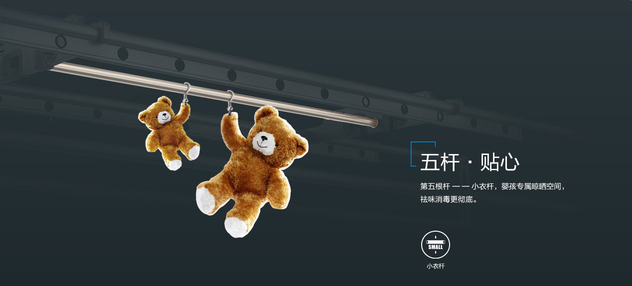 這還不夠,更驚喜的是,122系列擁有5根桿!利用2根晾桿間的空余空間,加了小晾桿。對(duì)于家里有孩子的家庭來說,非常實(shí)用了。